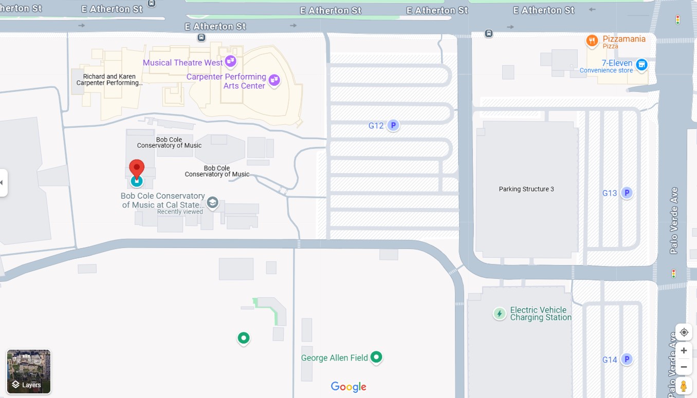 Parking: The parking lot closest to the Gerald R. Daniel Recital Hall is marked G12. Parking fees on the weekends are $10 to be paid at the parking lot pay machine. We strongly recommend using this parking lot and we plan to put up signs and will provide the map in this email. You can park for free at the nearby street - East Atherton Str. If you choose to do so, read carefully the parking signs, because some parts of the street do not allow parking, whilst others do. The closest way to the hall is entering the campus from East Atherton Street.